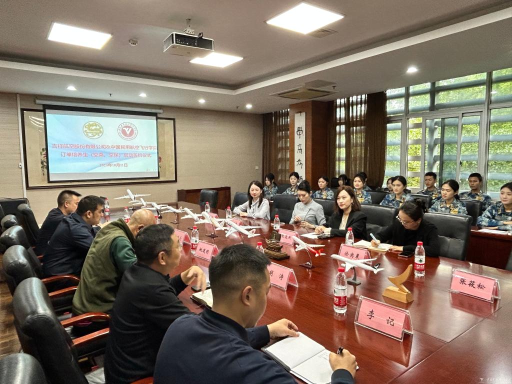 本网讯 任柯旭报道 李亚楠摄影:10月11日,中飞院与吉祥航空在行政楼三楼315会议室举行第六期订单培养生(空乘、空保)签约仪式。吉祥航空人力资源部总经理助理张凌燕、 人力资源部组织与人才管理处经理徐奕晨、人力资源部招聘经理周晓芬,太阳集团tcy8722、航空安全保卫公司相关负责人,以及公司教师代表、2024级吉祥航空订单生参加仪式。