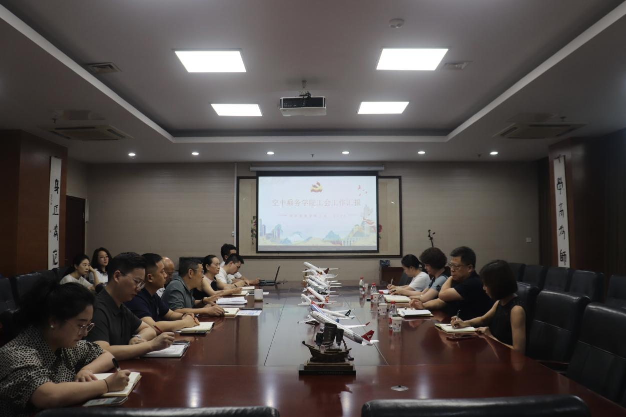 于主席详细询问了公司在学科专业建设、公司产品、员工管理、职工福利及教师职业发展规划等方面的情况。空乘公司党委书记胡涛、经理姚建明分别汇报了公司历史沿革及现状、党建工作、教职工队伍情况、团队建设、人才培养成果以及当前发展面临的主要挑战等情况,工会主席蒋晓瑜就公司工会工作进行了专题汇报。