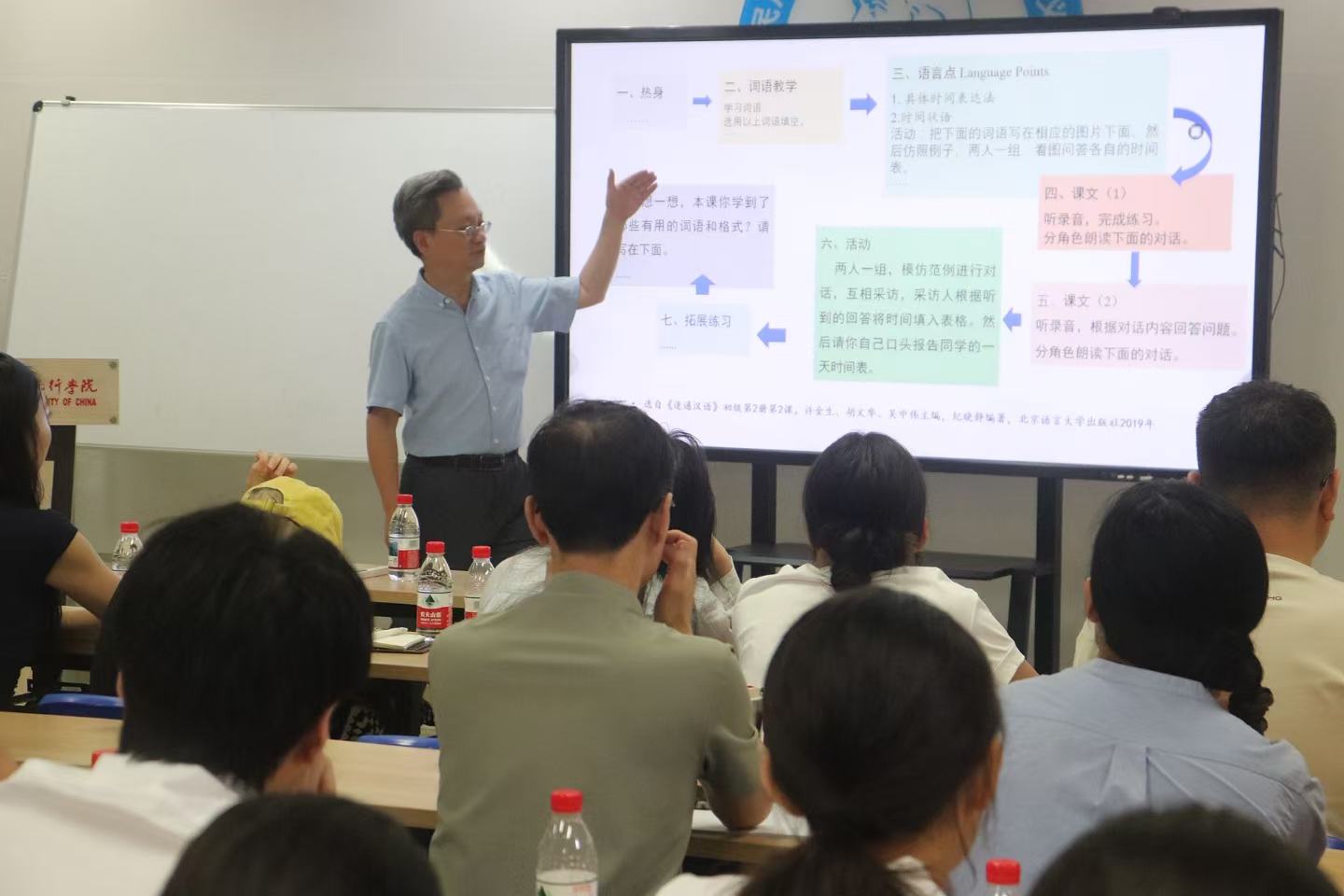 首场讲座中,吴教授围绕“二语教学的多元化和分众化”展开讨论,提出“输入、输出与互动”三大核心要素,强调了“可懂输入”和“有效输出”的重要性。结合小学教学案例,吴教授分析了语言教学应如何将语言规则与实际情境相结合。他还解析了PPP模式、“产出导向法”和“任务型教学”等主流教学模式,并通过国际幼儿园和“寻物启事”案例帮助大家理解其应用。