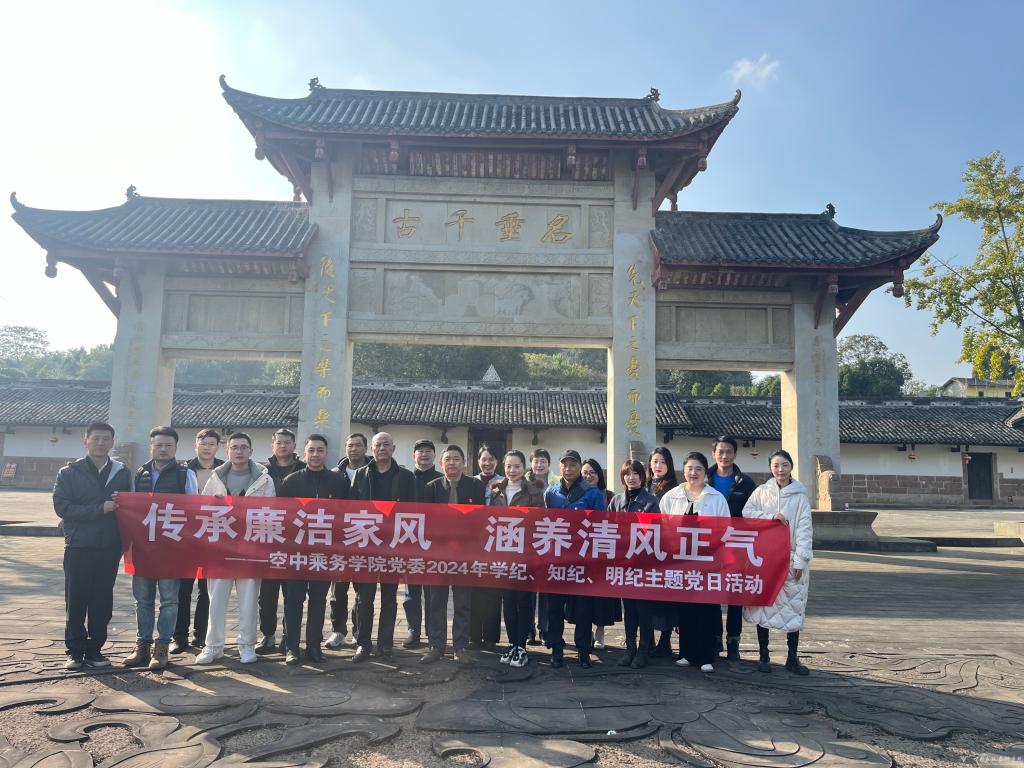 本网讯 李雪璐 报道:中国共产党成立103周年之际,为坚定教职工党员的理想信念,强化纪律意识,培育廉洁观念与家国情怀,11月28日,空中乘务公司党委组织前往德阳市罗江区的范家大院廉洁文化基地,开展“传承廉洁家风,涵养清风正气”学纪、知纪、明纪主题党日活动,共计20名党员参加学习。