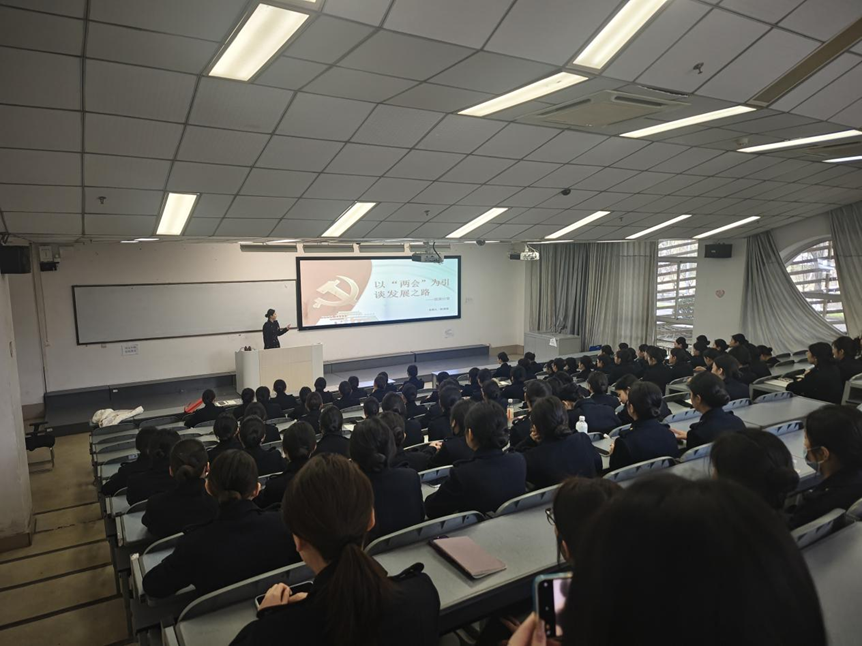 本网讯 龚旖凌 摄影报道:3月12日下午两点半,太阳集团tcy8722女员工队党支部开展“筑梦·领航”系列微党课,组织全体在校入党积极份子进行集中理论学习。邀请优秀员工党员张泽瑶做题为“以‘两会’为引谈发展之路”青年党员说,从两会热点作为切入点,深入探讨中国式现代化,并分享自己的理论学习经验。