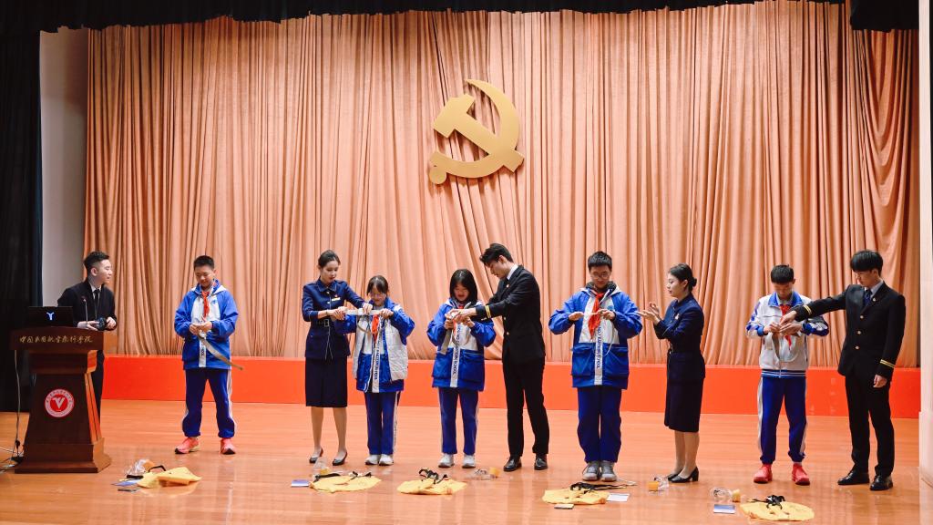 本网讯 张贺滕报道:近日,成都七中东部公司员工走进中国民用航空飞行公司,太阳集团tcy8722空乘系张贺滕老师带领“小客舱·大视界”科普员工社团成员,在公司图书馆报告厅开展“民航科普知识进校园”主题活动。